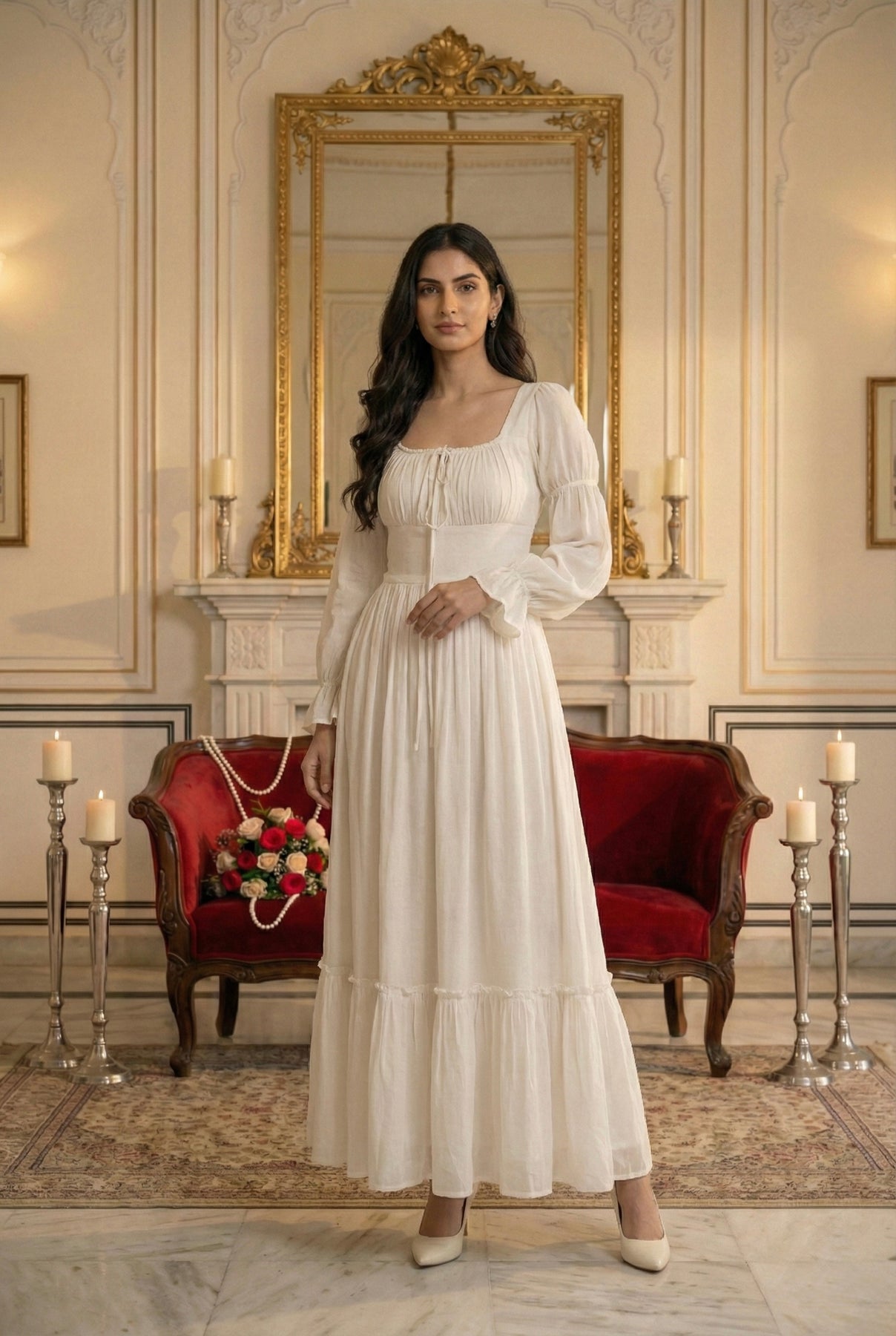 Body Shape Suitability: Flatters pear, hourglass, apple, and rectangle body types; square neckline and puff sleeves create balanced proportions