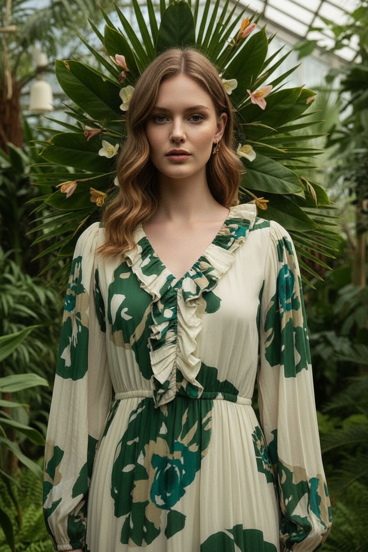 Float through your day in our The Meadow Ruffle Dress— a soft, whimsical piece featuring delicate dapple-style prints in calming pastel tones. Crafted from lightweight georgette and fully lined for comfort, this breezy silhouette is perfect for easygoing elegance, whether you're brunching, traveling, or celebrating under the sun.