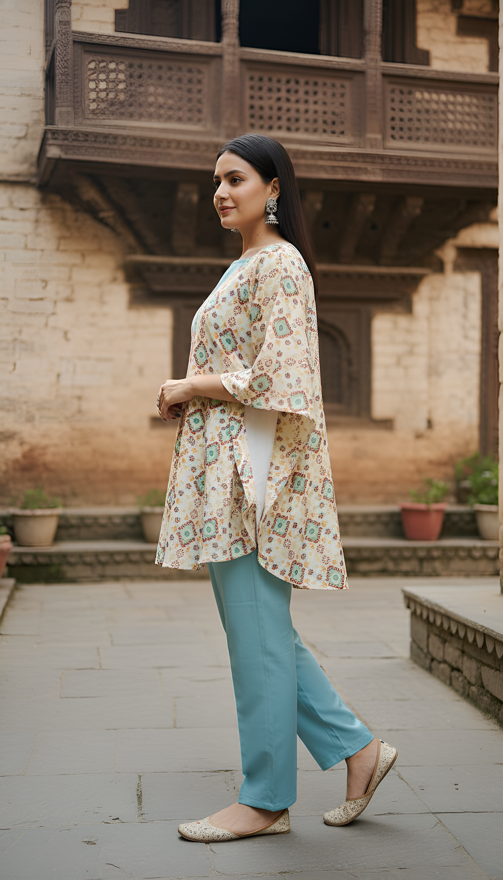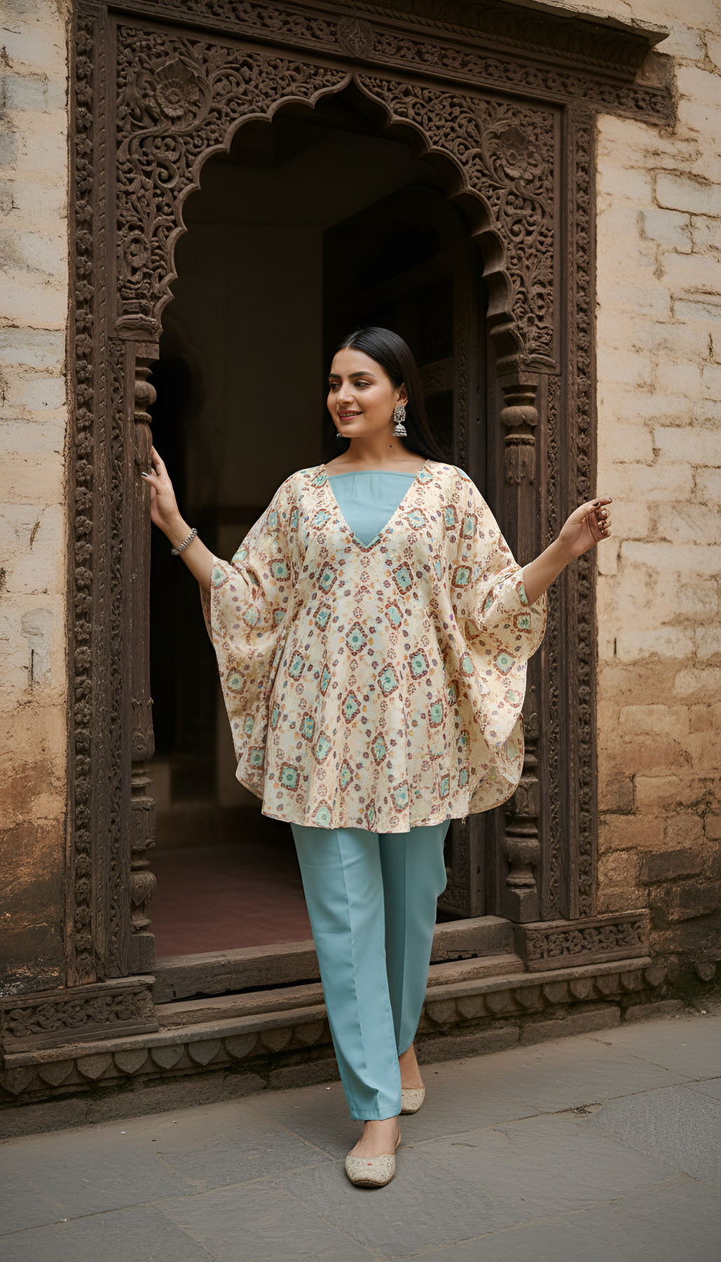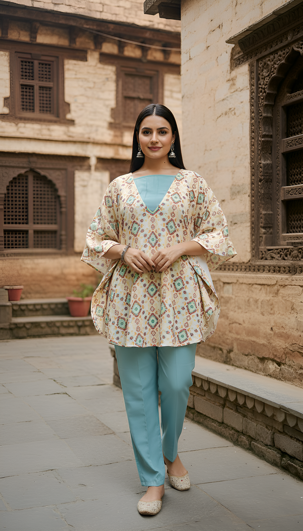 This winter collection piece combines traditional craftsmanship with modern comfort. The poly pashmina top provides the perfect balance of warmth and breathability, while the rayon bottom ensures a comfortable, flowing fit that moves with you throughout your day.